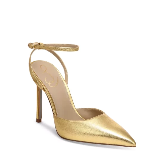 Coupon โญ Sam Edelman ๐ฉ Women’s Avril Ankle Strap Pointed Toe High Heel Pumps Gold ๐